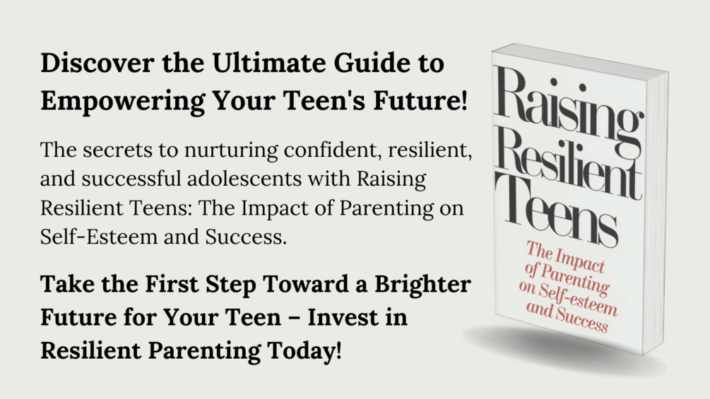Embrace the journey of raising confident and capable teens by tapping into the proven methods and inspiring insights packed in Raising Resilient Teens: The Impact of Parenting on Self-Esteem and Success. Get your copy now and start building a foundation for lifelong success!